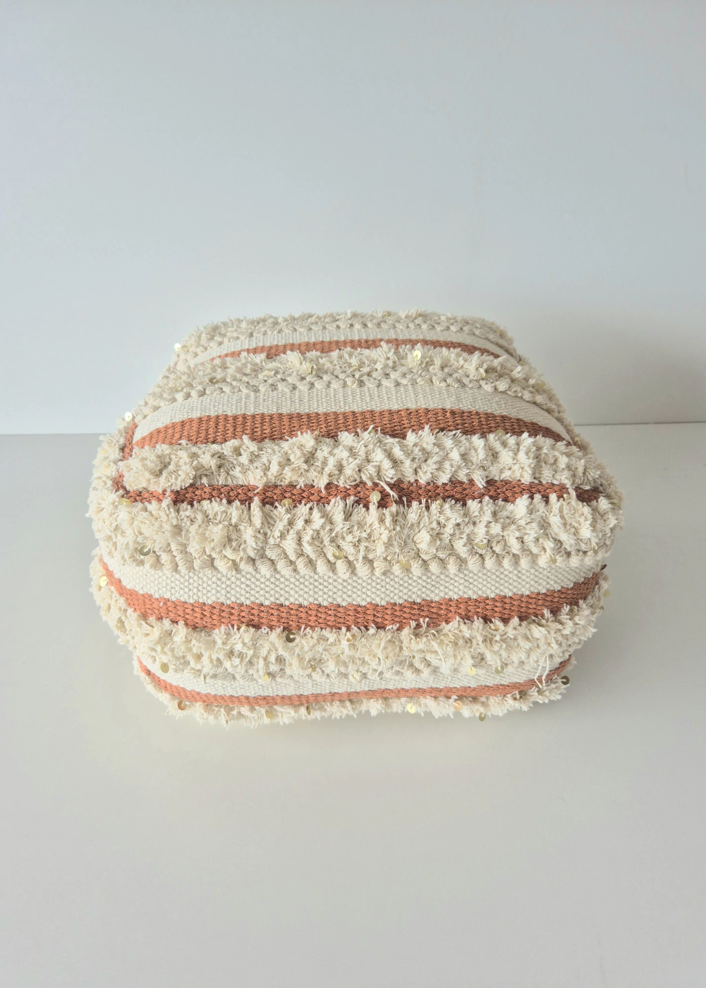 POUF HANDIRA CON RELLENO. DE ALGODON Y LANA, TEJIDO A MANO